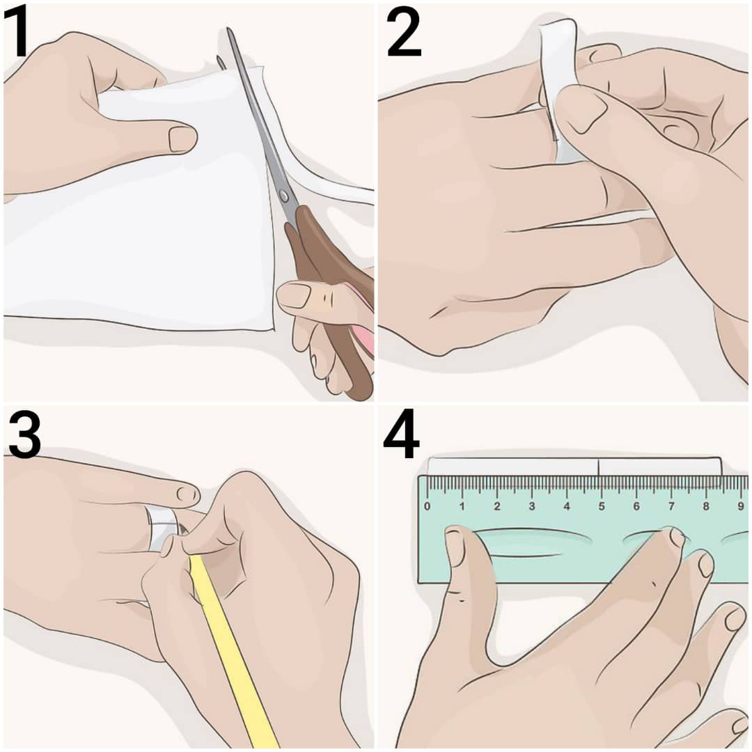 1 - احضر ورقة او خيط واقطع شريحة طويلة كافية لتلفها حول اصبعك .